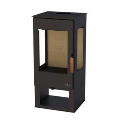 Estufa de leña vertical con tres cristales y leñero Bronpi ESTRELLA