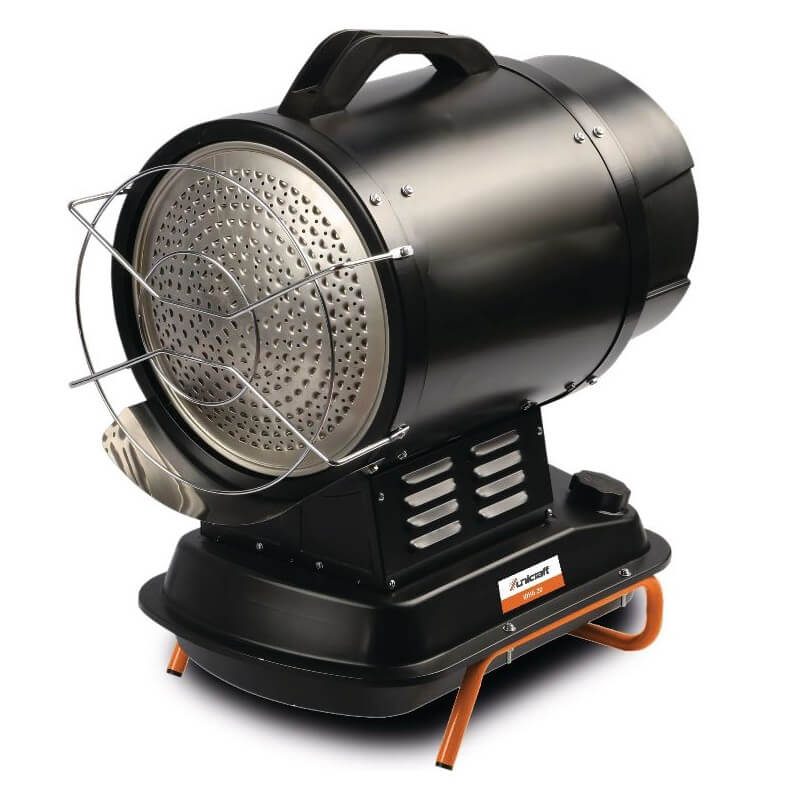 El calefactor radiante modelo IDHG 20 de la marca Unicraft funciona con combustible diesel y es ideal para usar en grandes espacios ventilados.