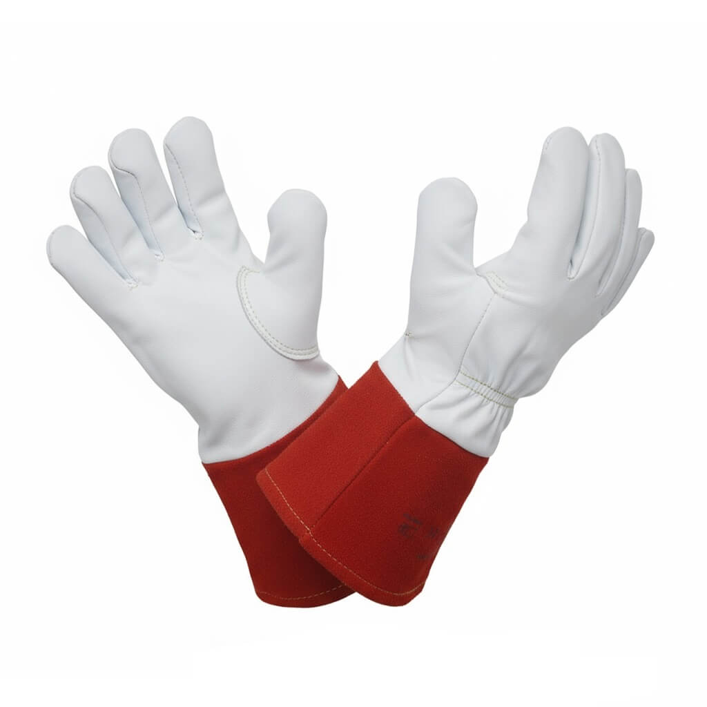 El puño largo en cuero partido protege eficazmente ante chispas y salpicaduras térmicas.