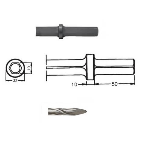 Información detallada de Puntero autoafilable SPEED POINT para martillos neumáticos inserción Hexagonal 19x50 de 330mm:
